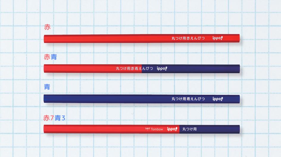 「赤えんぴつ」「赤青えんぴつ」「青えんぴつ」「赤7青3えんぴつ」をラインナップ。使い方に合わせて選べます。